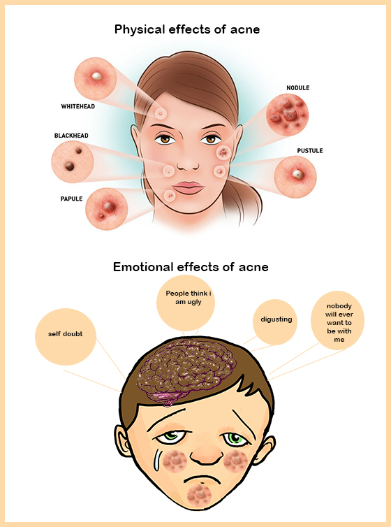 The treatment of severe acne involves both the physical treatment of the affliction and the mental health component that often is the result of being subjected to ridicule and emotional pain amplified by the fact it occurs during the developmental years of puberty early adulthood when a person begins to form their self-image.